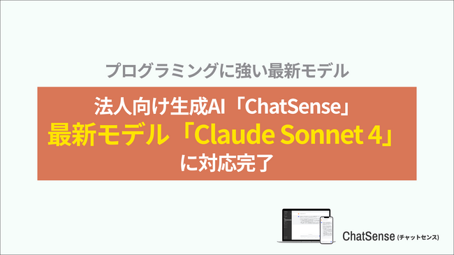 大企業の知的活動を最速にする株式会社ナレッジセンス(本社:東京都港区、代表取締役:門脇敦司、以下ナレッジセンス)は、当社が提供する、セキュアな環境で生成AIを法人利用できるサービス「ChatSense」について、Anthropic社の最新AIである Claude Sonnet 4 に対応完了したことを発表します。