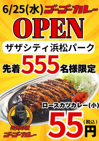 あの金沢カレーが静岡に! 新店舗「ゴーゴーカレー ザザシティ浜松パーク」をオープン。ゴリラ流の引っ越し挨拶は、オープン日の6月25日限定、人気メニュー「ロースカツカレー(小)」の特別価格!