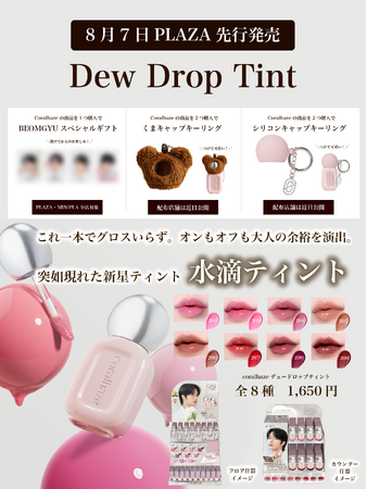 Coralhazeは「Discover your distinctive vibe.(自分だけの個性を見つける)」というスローガンのもと、人それぞれに合わせたムードを演出し、多様でトレンディーなメイクアップ製品を提案するブランドです。2024年11月に発売された「グロウロックゼリーティント」は、南京錠をモチーフにしたユニークなパッケージと、ぷるんとしたゼリー状のテクスチャーでSNSを中心に話題となり、日韓で多くの注目を集めました。そしてこの夏、Coralhazeは世代を問わず使える“水滴ティント”として「デュードロップティント」を発売いたします。あわせて、PLAZAプロモーション Coralhaze with BEOMGYU 第3弾を展開いたします。