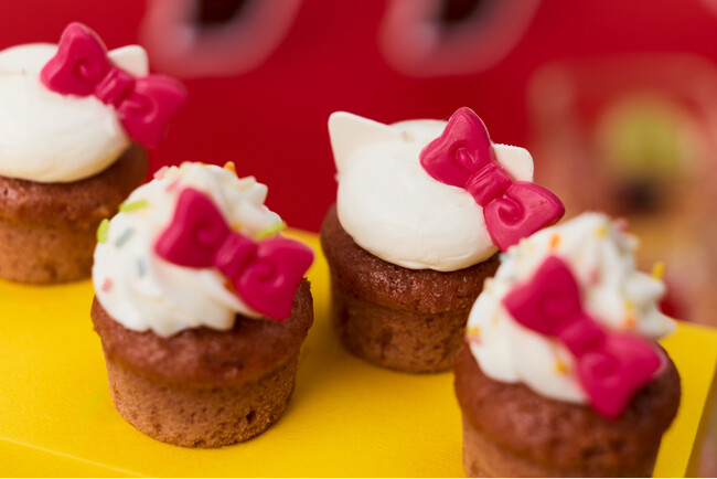 ビュッフェラインビュッフェラインには、ハローキティのお顔をモチーフにした「HELLO KITTYの“はい、チーズ!”ケーキ」や、クッキーづくりが大好きなハローキティもわくわくの「HELLO KITTY Cookies」、ハローキティ、ハローミミィのトレードマークであるリボンがポイントの「おめかしRIBBONのカップケーキ」など、キュートな双子の世界観を存分に堪能できるスイーツをラインアップ。