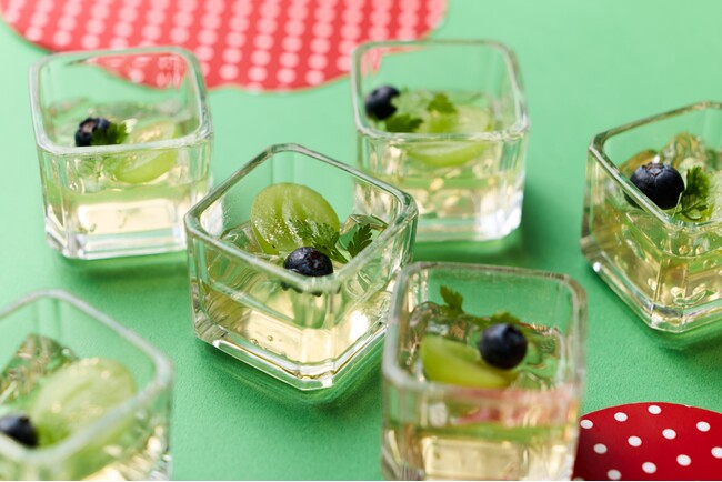 ハローキティの大好物であるアップルパイをパフェとして仕上げた、新感覚のウェルカムデセール。りんごゼリー、カスタードクリーム、りんごのソテーを重ね、さくさくのパイの上にはりんごのムースを可愛らしく飾りました。