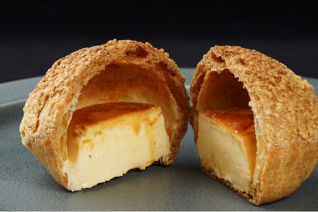 小麦粉を一切使わず、米粉で仕上げたサクサク軽やかなシュー生地に、濃厚さが通常の約8倍もある特製プリンを詰め込んだ、唯一無二のスイーツです。