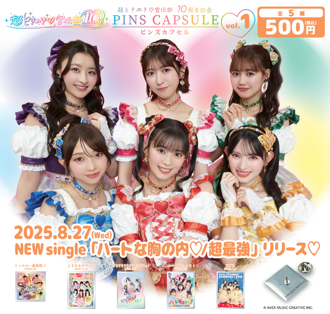 このたび、「超ときめき(ハート)宣伝部」のデビュー10周年を記念し、ピンズカプセルトイを本日2025年8月26日(火)より順次発売することが決定いたしました。
