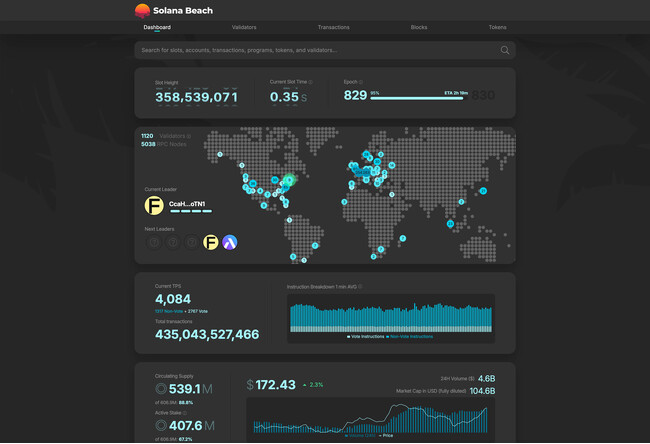 Solana ではリーダーバリデータがグローバルに短周期で交代します。Frankfurt・Amsterdam・New York にバリデータが多く集積しており、概ね約50%がこの3都市圏に集中しています。