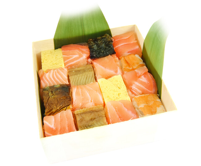 箱寿司の魅力の一つが、コンパクトな箱の中で表現される配列と彩りの美しさです。幾何学模様で並ぶ様は、まるでモダンアート!また、口の中で具と米が程よく融合する味わいも特徴です。小さな箱に詰まった一口サイズの寿司が時間がたってもおいしいので、ハレの日の食事や手土産、芝居見学の合間のお弁当として重宝されてきました。