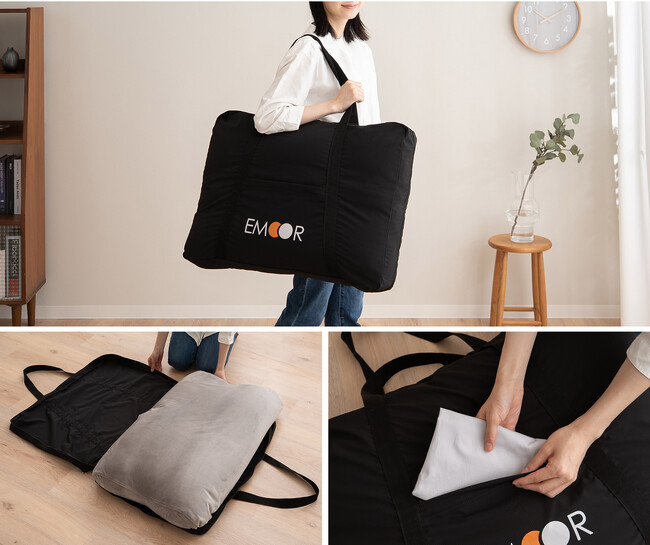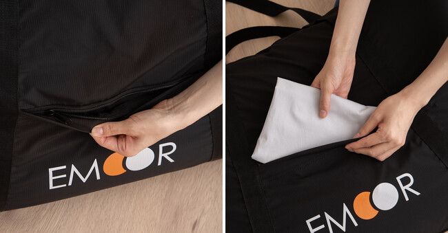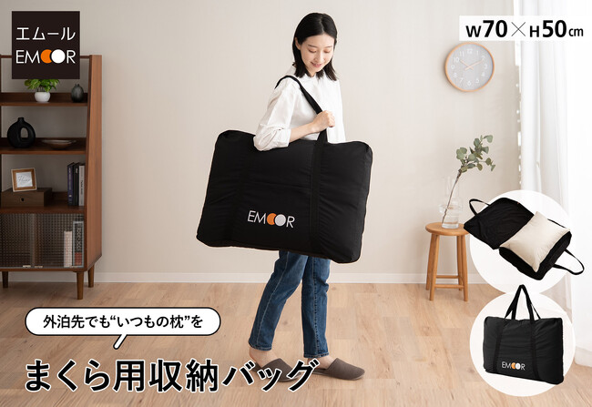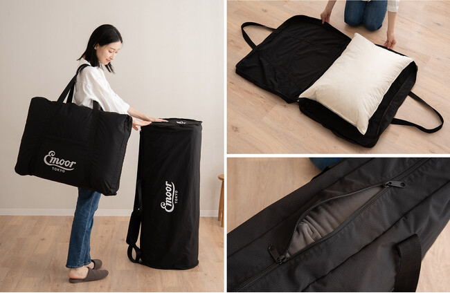 “寝る・座る・たたむ”に高い専門性を持つ健康家具ブランドEMOOR(エムール)から、大切なまくらを守り、スマートに持ち運べる収納バッグが登場しました。