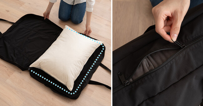 遠征や出張でも“いつもの枕”で快眠を。耐久性・収納力に優れた「まくら用収納バッグ」が登場!