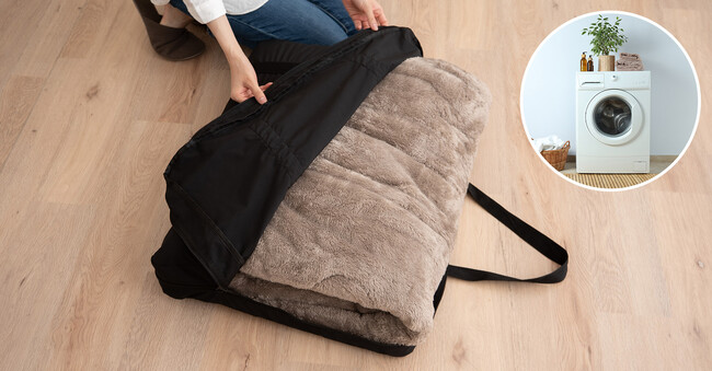 洗濯機で丸洗いが可能。外泊後も清潔を保ちたい方に最適です。※洗濯ネット使用推奨