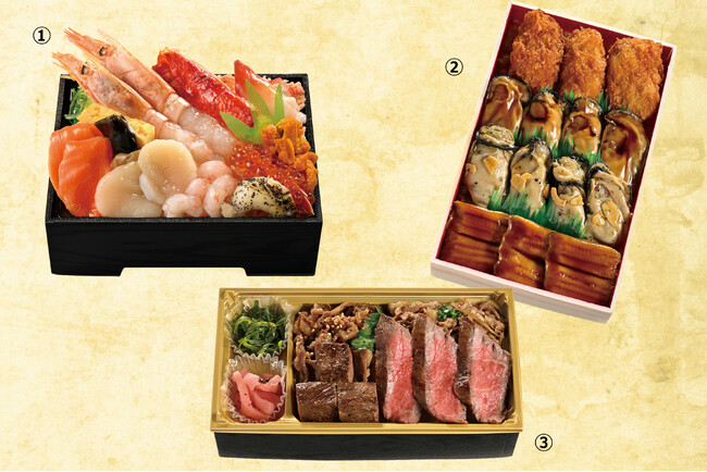 3.山形<米沢 琥珀堂>米沢牛2種のステーキ&すき焼き&焼肉弁当(1折)