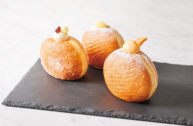 <MILK DO dore iku?(ミルクドドレイク)>左から)あんバター(1個)380円、自家製カスタード(1個) 350円、芳醇メロン(1個)400円 ※芳醇メロンは各日100個限り