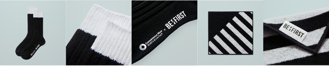 「コンビニエンスウェア」から2025年クリスマスアンバサダー「BE:FIRST」とのコラボレーションアイテムとして、ソックスとハンカチをファミマオンラインで発売いたします。「BE:FIRST」のテーマカラーである黒と白を基調に、ロゴの世界観を表現しました。ライブコーデにはもちろん、普段使いもできるデザインです。