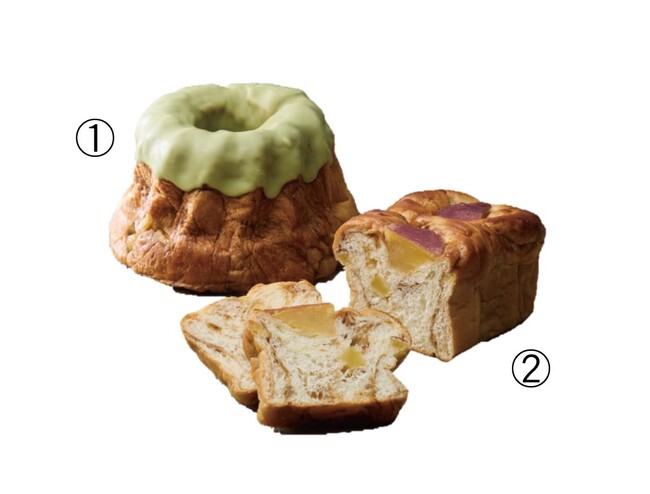 山梨県<コーナーポケット>1.栗とあんこの和み富士 1,401円 ※各日40点限り 2.金時いものパン 651円