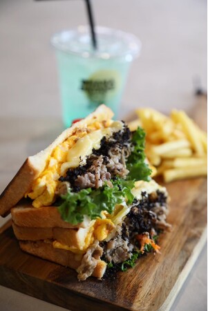 2017年キッチンカーから創業するやいなや、全国で引っ張りだこになり各地で行列をつくるホットサンド専門店が東海地区初登場。鉄板で焼かれたパンで新鮮野菜とチーズ、和牛と黒トリュフをはちきれんばかりに挟んだ熱々ビーフサンドはブランド人気No.1。