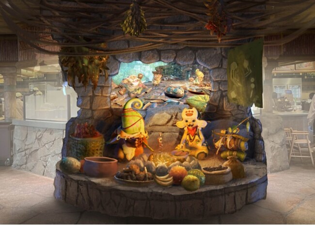 緑豊かな緋の森にある“モリバーのアジト”を再現した本レストランでは、にぎやかな獣人族モリバーや、ハンターの頼れる相棒オトモアイルーが焚き火を囲んで出迎えてくれます。ゲストの皆さまは、ハンターとして参加した“モリバーの宴”で、こんがり焼けた焚き火料理にかぶりつき、力がみなぎるような“超衝撃”体験を満喫することができます。日本発エンターテイメントの作品世界の真っただ中に体ごと入り込む『ユニバーサル・クールジャパン』でしか味わえない“超リアル”な食体験にご期待ください。