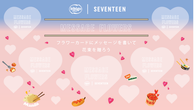 ポップアップイベント「bibigo|SEVENTEEN MARKET」について 「bibigo|SEVENTEEN MARKET」はSEVENTEENと「bibigo」が贈る、ときめきと発見の詰まった体験型のマーケットです。店舗内はSEVENTEENの公式カラーである「ローズクォーツ&セレニティ」に彩られたかわいらしい空間が広がります。7つのゾーンをめぐりながら、撮って、食べて、集めて、楽しめるスペシャルな空間です。推し活の新スポットとしてもお楽しみください。