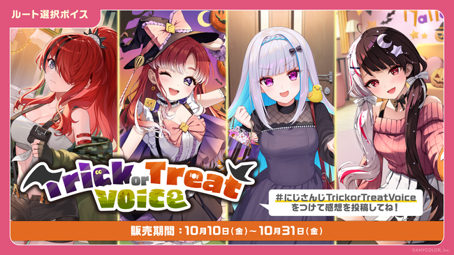 2025年10月10日(金)12時から2025年10月31日(金)23時59分までの期間、にじさんじオフィシャルストア(https://shop.nijisanji.jp)と、NIJISANJI EN Official Store(https://nijisanji-store.com)にて「にじさんじ お泊りボイス」「にじさんじ Trick or Treat Voice」の販売をいたします。
