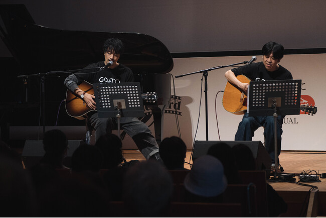 恒例のウェルカムソングはcinema birdsの齊藤工と豪起が担当。齊藤の甘い歌声と豪起の力強い歌声で来場者をお迎えしました。スペシャルライブには、2024年1月24日にリリースしたアルバム『Trinfinity』のジャケットを齊藤が撮影するなどで親交があり、バークリー音楽大学を主席卒業、第45回グラミー賞ノミネートなど、日本が誇る世界的ジャズピアニスト小曽根真が登場。「この会場のピアノ、素晴らしいピアノですね。くるなり興奮しています。」と話すと、「JAZZという言語があるだけで、世界中どこにいってもひとつになれるんです。音楽という言語は言葉にしなくても、生きている限り共有できる“ミラクルな時間”が作れます。今日なそんなミラクルな時間を作れれば。」と想いを伝え、そして、『Gotta Be Happy』、さらに、希望を捨てたくないという思いを乗せた『Where do we go from here?』の2曲を披露。「音楽という言語」を全身で体現するかのような世界レベルの演奏に、観客の心を揺さぶる特別な時間が広がりました。