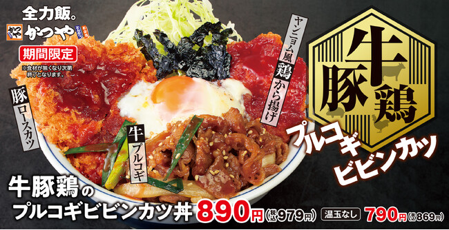 アークランドサービスホールディングス株式会社の子会社、とんかつ専門店「かつや」を展開している株式会社かつや(本社:東京都千代田区/代表:大内 勇一)は、国内「かつや」にて「牛豚鶏のプルコギビビンカツ丼」と「牛豚鶏のプルコギビビンカツ定食」を2025年10月10日(金)より期間限定で販売を開始いたします。