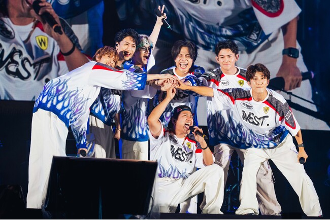 舞台袖でウルフルズのアクトを見ていたWEST.のメンバーは、松本に呼ばれてステージに上がってからも「夢みたいに幸せな時間やった」と余韻に浸っている様子。そして、松本がWEST.のために作詞・作曲し、サウンドプロデュースをウルフルズが手掛けたソウルフルなナンバー『ウェッサイソウル!』でWESSIONを。ステージを所せましと動き、代わるがわるギターを弾く松本の隣に立って楽しそうに歌う7人。最後には神山が始めたフリーダンスをメンバーが真似し始め、松本は爆笑。「すごいわ。うれしい。ホンマにみんなで曲を育ててくれた」と胸いっぱいの表情を見せていた。