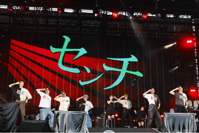 メンバー7人がステージに並ぶと、重岡は会場を見渡して開口一番、「これだけは言わせてくれ~。むちゃくちゃ人おる~」と大興奮。続けて、「宣誓! 僕たち、私たちは『WESSION FESTIVAL 2025』にお集まりいただいた皆さんを幸せにしたいから、己の限界に挑戦することを誓います」「会場を来たときよりも綺麗にして帰ることを誓います!」など、ユニークな宣言をさまざま繰り出した。最後は7人が声を合わせて、「第1回、『WESSION FESTIVAL 2025』、スタート」と開幕を高らかに宣言!