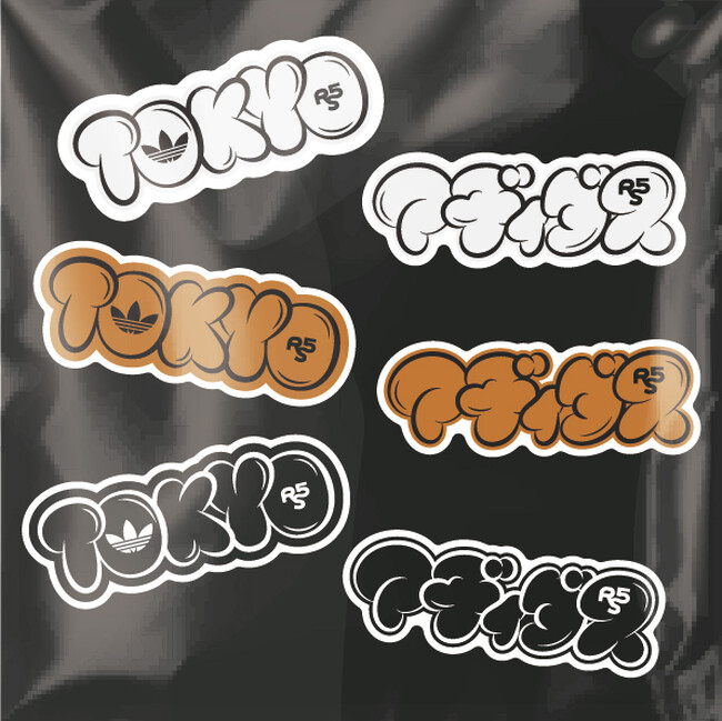 対象の「SUPERSTAR II」をご購入いただいたお客様に、先着で特製ステッカーパックをプレゼント。対象商品の「SUPERSTAR II」のアウトソールに施された「TOKYO」・「アディダス」のグラフィティがそのままステッカーとなり、SUPERSTARを象徴するブラックと白、そしてRIP SLYMEカラー(オレンジ)の3色、計6枚が1セットに。