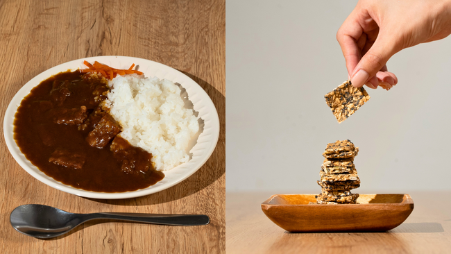 蒟蒻技術を使用した「NINZIA BOSAI 欧風カレー」と「ストイックすぎるプロテインクラッカー」を販売