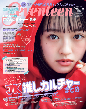 ⚫︎集英社「Seventeen」(セブンティーン)について(c)Seventeen2025年秋号 上坂樹里表紙版/集英社 撮影/柴田フミコ1968年に創刊した女子高生向けのティーンズメディア。エネルギッシュで感度の高いティーンに向けて、ファッション・ビューティ・恋愛・悩み相談など、女子高生の今と未来を応援する、楽しくて役に立つ等身大の情報を発信しています。専属モデルやタレント、読者/ユーザー、インフルエンサーなどが、web・SNSや雑誌等を通じてつながる「双方向のコミュニケーションの場」を提供しているメディアです。
