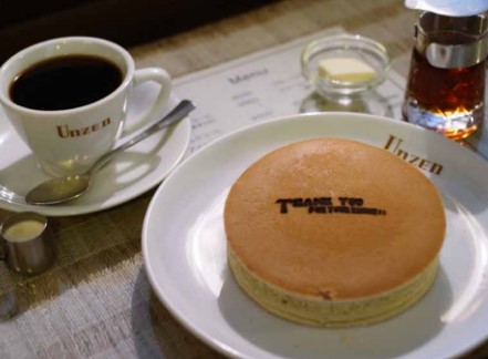 店主の祖父が1935年に創業。当時のガス式焙煎機が90年経った今も現役で活躍する、京都の自家焙煎店のパイオニア。主に国産の粉を使って開発した完全オリジナルのホットケーキは、程良い甘さでふわふわモチモチ食感です。