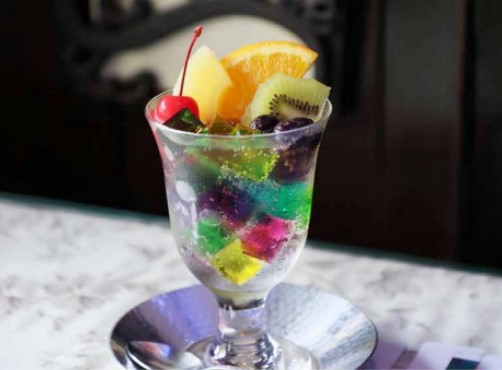 フランス語で“素敵な夜”という意味を持つ「喫茶ソワレ」は、1948年創業。看板商品は、透明な5色のゼリーが重なり合い色のゼリーが重なり合い、様ざまな色を奏でながらキラキラ輝くゼリーポンチ。