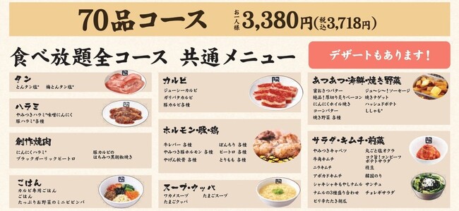 ・対象コース:食べ放題コース(70品コース/牛角コース/牛タン・上焼肉コース/黒毛和牛コース)