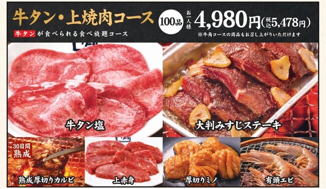 +αさらに!牛角コース以上で食べ放題対象:牛角コース / 牛タン・上焼肉コース / 黒毛和牛コース
