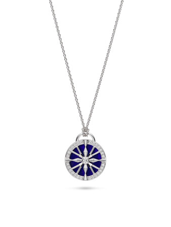 未来を照らすお守りのような存在として日常を華やかに彩るコレクションに、新たに加わったのはラピスラズリを主役にしたペンダント。深遠なブルーの色彩美と8本の矢に共鳴するダイアモンドの輝きは、身に着ける人に幸運を呼び寄せます。