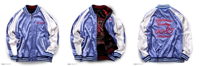 本商品は、光沢のあるサテン地に、和柄テイストのダイナミックなイラストを繊細な刺繍で表現したリバーシブル仕様のスカジャンです。