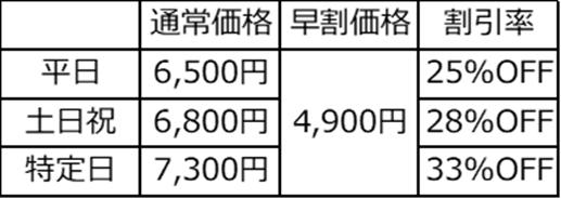早割券としての販売ですので、お得に早割券をご購入いただけるチャンスとなります。