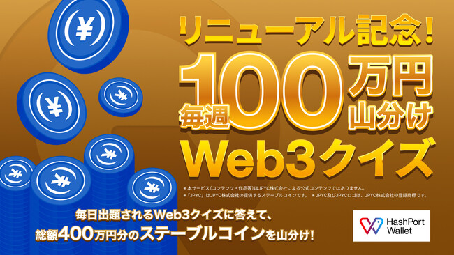 HashPort、HashPort Walletへのリニューアルを記念して「JPYC1億円あげちゃうキャンペーン」を実施