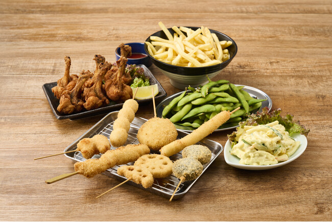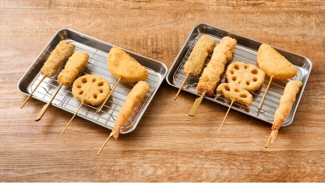 串カツは「串カツ豚」「レンコン」「チーズ」「うずら」「たらこ」「クッキー&クリーム」の7種がボリュームアップ!