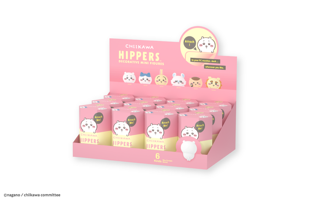 株式会社ドリームズ(本社:東京都新宿区/代表取締役 添谷徹)は、イラストレーター・ナガノ氏が描く人気作品「ちいかわ」デザインのデコレーションフィギュア『HIPPERS ちいかわ』を、2025年11月21日(金)より販売開始します。『HIPPERS ちいかわ』では、ちいかわ、ハチワレ、うさぎ、モモンガ、くりまんじゅう、シーサーの6種類+1シークレットがラインナップ。「HIPPERS」とは、日常のさまざまなアイテムに貼りつけて、可愛くデコレーションできるフィギュアです。パソコンやスマートフォン、テレビの上など、身の回りにあるものにくっつけて、いつでもちいかわたちと一緒に過ごすことができます。全国のバラエティショップ・書店およびちいかわらんど、ちいかわマーケット、ドリームズオンラインショップにて順次発売予定です。