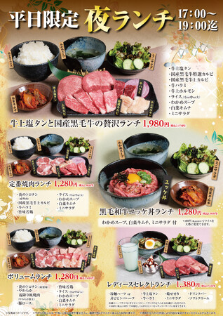 あみやき亭19店舗で「夜ランチ」メニューをリニューアル! ~平日17時~19時限定のお得な焼肉セット登場~