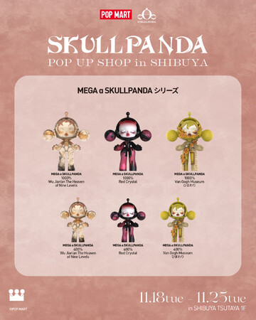 今回のポップアップには、人気アートトイシリーズ「SKULLPANDA(スカルパンダ)」が登場し、世界を席巻する日本人アーティストXGとの日本限定コラボアイテムを先行発売するほか、SKULLPANDAのアーティスト Xiong Miao(ション ミャオ) 氏によるサイン会など、ここでしか体験できない特別な企画を実施します。世界中で愛されるSKULLPANDAの魅力を、渋谷の中心でぜひお楽しみください。