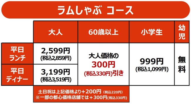 ※12/26~1月上旬の期間のみ「ラムしゃぶ&国産牛 コース」を中止させていただきます