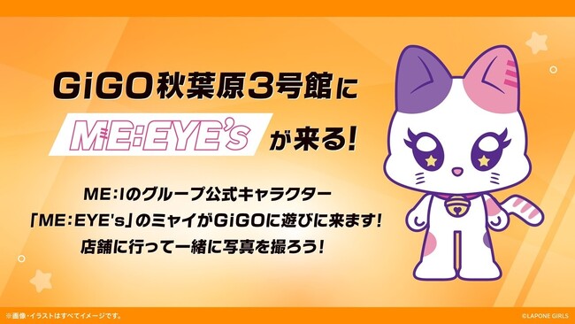 着ぐるみグリーティング(「ME:EYE’s」のミャイによるGiGO秋葉原3号館来店イベント)GiGO秋葉原3号館に、ME:Iのグループ公式キャラクター「ME:EYE‘s」のミャイが登場します。