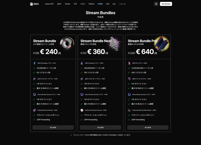 ERPC では、Solana の高速回線をまとめて利用できる「Stream Bundle Pro」を提供しています。
