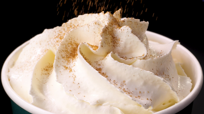 天然ブルボンバニラエキス香る、ふわふわのホイップクリームブランドの特徴でもある天然ブルボンバニラエキスを使用した、ふわふわのホイップクリームをたっぷり乗せて、仕上げに横浜バニラオリジナルのウィンタースパイスをさらに振り掛ければ完成。
