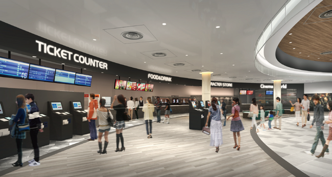 『シネマワールド 中川』は 全12スクリーンを有するシネマコンプレックスです。中川店へお越しのお客さまに、より快適な時間をお過ごしいただくとともに、シネマワールドの世界観を体感していただける空間へとリニューアルいたします。ロビーを一新し、広々とした待合スペースを新設。映画の上映前後の時間をゆったりとお楽しみいただける、開放的で心地よい空間をご提供いたします。また、フードセルフオーダー機・ドリンクバーを新たに導入し、飲食物の購入が一層スムーズに。より便利で快適な映画館として生まれ変わったシネマワールド中川で、ぜひ大切なひとときをお過ごしください。