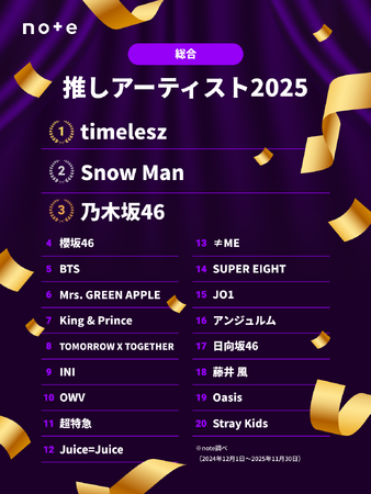 noteに投稿された“推し活”の記録から選出した「推しアーティストランキング2025」を発表しました。