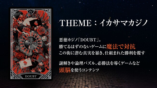魔力を発現させたばかりのあなたは、噂の闇カジノへ潜入捜査をすることに。イカサマやトリックを見破り、闇カジノを壊滅させよう!