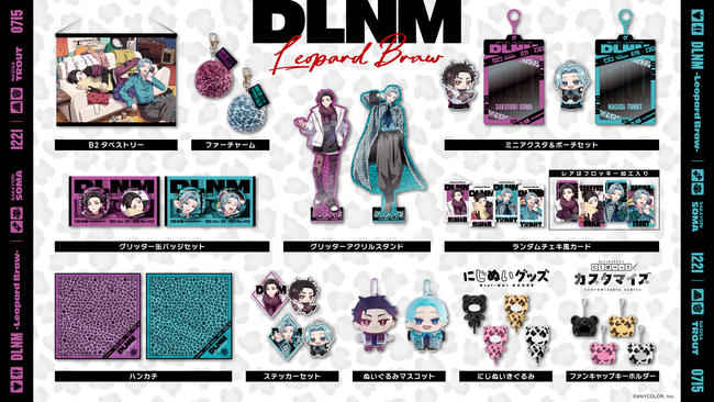 VTuberグループ「にじさんじ」所属の酒寄颯馬、渚トラウトの「DLNM - Leopard Braw -」グッズが登場!