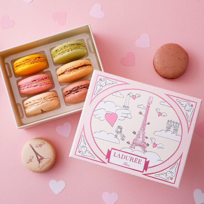 <ラデュレ>マカロンボックス アムール・ド・パリ(6個入) 3,456円<ラデュレ>マカロン発祥のメゾンでパリの老舗パティスリー、<ラデュレ>のバレンタイン限定ボックス。