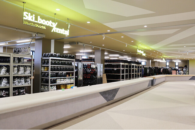 既存の施設から施設面積を「2.5倍」に拡張して、スキー・スノーボード板やブーツ、ブランドウェアを1000セット新導入し日本最大級となる「5000セット」を完備、コインロッカーも1200台新導入して「2500台」を完備した他、「綺麗で快適な更衣室、トイレ」の完備、「ハイグレードレンタル」の導入、施設内の導線見直しと合わせて、快適な移動を実現する「エスカレーター2基」を新設して、最新かつ利便性の高いレンタルを開業し、利用者が快適にウィンタースポーツを楽しめる環境を整えました。