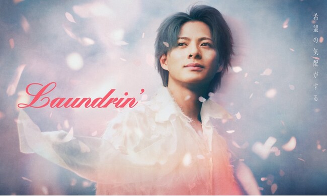 またビジュアル全体を包み込むのは、春霞(はるがすみ)を思わせる幻想的な光と色彩。ピンクやブルーが溶け合う柔らかな雰囲気は、ランドリンの香りがもたらす「豊かさ」や「心地よさ」を表現しています。 その中で少し遠くを見つめる平野紫耀さんの表情は、これから始まる新しい季節への期待と芯の強さを感じさせます。